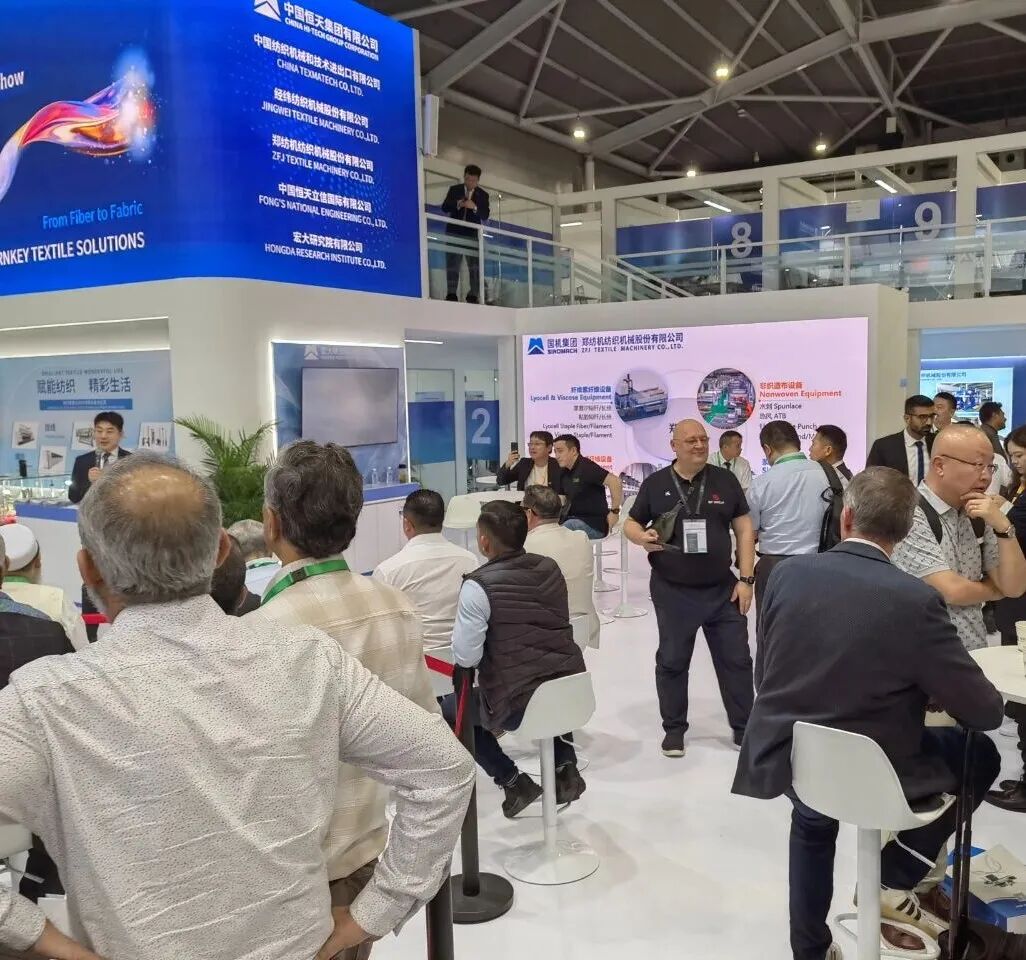 ![]() ![]() ![]() 展会现场,“智能制造”成为高频词,多家国际知名企业携拳头产品亮相。恒天集团展台上集结了纺纱、化纤、非织造、印染后整理、纺织专件等板块的系统性解决方案,让客户综合感受到了其在高效、节能、智能等方面的突破;青岛世纪海佳携其HA-9030N喷气织机、HW-001喷水织机及HJ-C31凸轮开口装置集中亮相,呈现中国织造机械在智能化、绿色化方面的制造实力;范德威尔集团旗下品牌集中展示了包括织造、纺纱、针织、后整理和数字化解决方案领域的重大技术突破,其中萨维奥的新一代络筒机Proxima Smartconer®对节能、管纱流动和人工智能驱动等功能进行了升级;远信工业首创的Y5088AI智能定形机,以AI视觉全流程控制与工艺自优化系统开启印染定形新范式;史陶比尔SAFIR PRO S37自动穿经机最高运行速度可达280循环/分钟,提供了超灵活的自动穿经解决方案;日发纺机携全成型棉袜一体机与无缝内衣机参展,前者实现织袜、缝头、翻袜一次性完成,后者可一次性编织无缝单面服装;朗维(LMW)携最新型号梳棉机、并条机、细纱机、自动络筒机等环节的智能化设备惊艳亮相,共同构建基于数据应用的高效节能纺纱解决方案;宏大智慧科技展出其最新推出其全新自研产品——HVMC-25 AI系列智能图像整纬机,采用先进的人工智能识别单元,提高响应能力及控制精度;乌斯特推出全新Uster Fabriq Vision 2 织物检测仪,可在同套设备中测试棉纤维与合成纤维特性的Uster AFIS 6 单纤维测试仪等重磅产品;水富纺器展示了其在特种织造领域钢筘产品的独特优势……