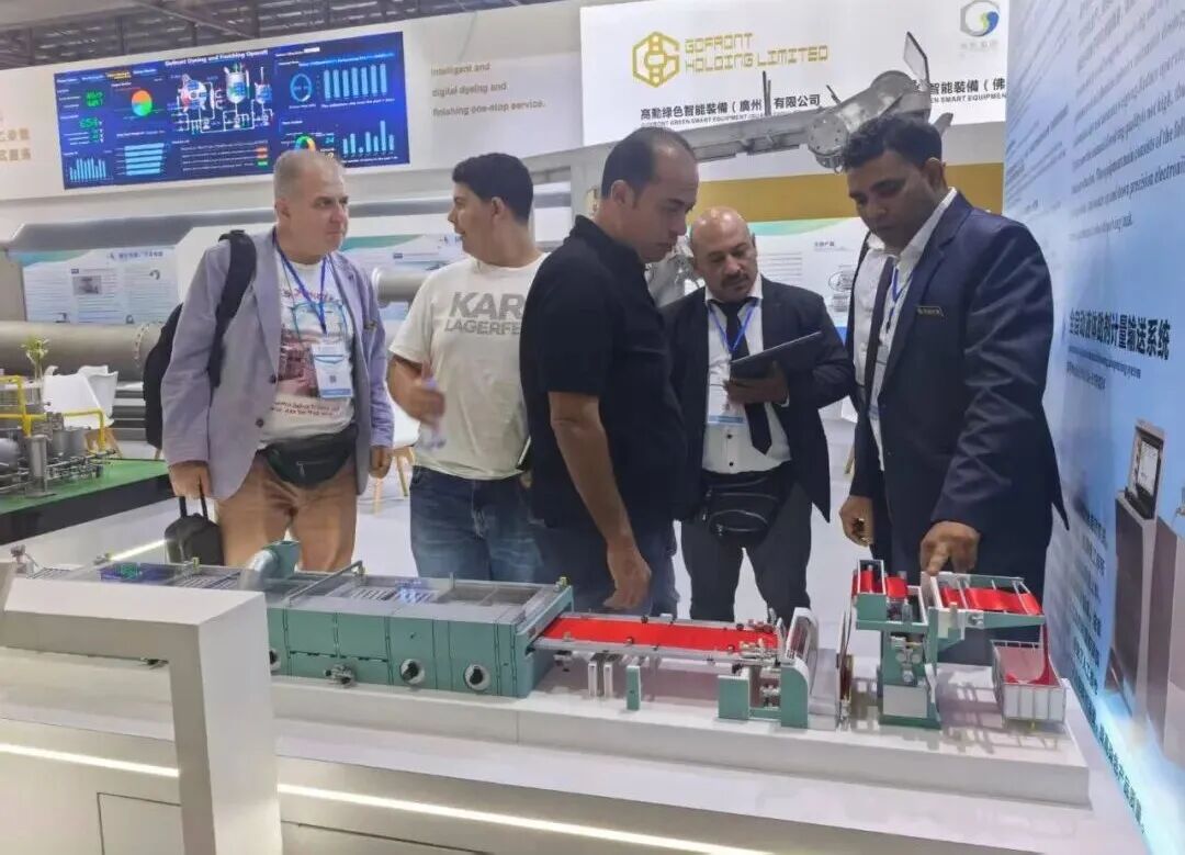 中国纺织工业联合会会长孙瑞哲等行业领导出席展会开幕式并参观了重点企业展位。孙瑞哲表示:“当前全球纺织业正处于深刻变革的关键期,数字化转型与绿色可持续发展已成为驱动行业高质量发展的核心引擎。”他强调:“本届展会集中展现了自动化、人工智能、再生纤维技术等前沿成果,彰显了纺织机械向高效、智能、低碳方向加速跃迁的决心与实力。”