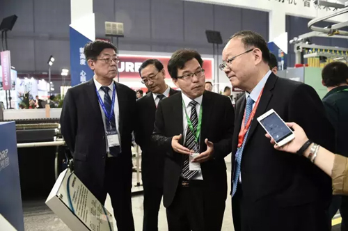 中国纺织工业联合会党委副书记、秘书长高勇、副会长李陵申、原副会长徐文英在中国纺织机械协会会长王树田等人的陪同下在H1和H2馆参观了浙江金鹰股份有限公司、青岛环球集团股份有限公司卓郎纺织机械有限公司、立达集团、萨维奥纺织机械有限公司、贝斯特机械制造有限公司等企业,对企业展出的新装备、新技术进行了详细了解。