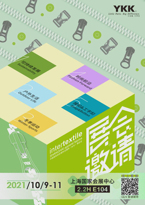 作为拉链行业的知名企业,在致力生产制造优质产品和技术开发的同时,也在不断为保护地球环境和与地区共生倾注力量。 2021年10月9日-11日,中国国家会展中心(上海)2.2馆E104,欢迎一起探索YKK的创新之旅。 可扫描二维码查看本次展出商品信息