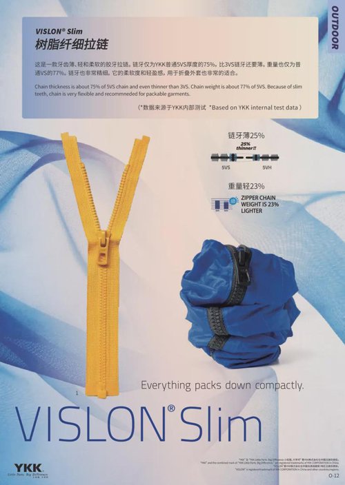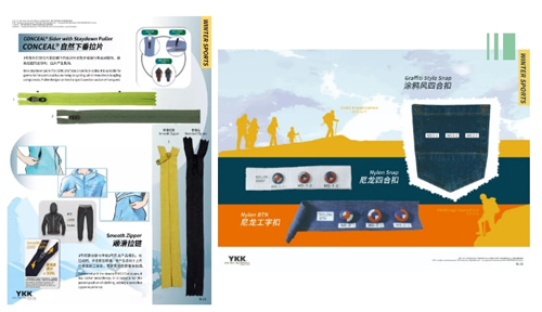五大主题系列产品 精彩亮相 本次YKK参展产品分为五大系列:可持续发展、冬季运动、户外生活、时尚前沿、按扣&工字扣。 01 SUSTAINABILITY 可持续发展 为实现可持续愿景而推出的环保产品 推荐产品: NATULON Plus?再生材料拉链 GreenRise?基于植物原料的拉链 原着黑色拉链 工字扣/铆钉/四合扣面扣及各种其他型号冲压产品