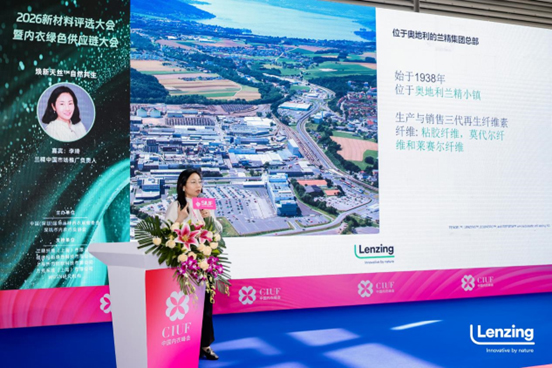 ![]() 在展会同期的2026新材料评选大会暨内衣绿色供应链大会上,兰精中国市场推广负责人李琦发表《焕新天丝™,自然共生》主题演讲。“天丝™品牌纤维是屡获殊荣、绿色环保、高舒适度的材料。”李琦介绍,天丝™莱赛尔和莫代尔纤维来自天然可再生木源,取材于负责任管理的森林,不仅触感柔软、穿着轻便,生命周期结束后还能自然分解、堆肥,回归自然。根据相关数据统计,超过80%的中国消费者认为含有天丝™纤维的产品值得以更高价格购买,这不仅印证了品牌的高端定位,更释放了整条价值链的定价与利润优势。