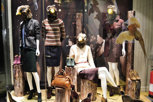 这个主题利用大大小小的美丽植物呈现了秋季叶子的色彩。植物紫色、锈红色与樱花粉色探寻了本季跨季色彩更柔和的一面。Alexander McQueen与Browns Focus的橱窗展示了艺术风格手绘花朵,而Harvey Nichols则以一系列色彩编码小饰物, 展示了秋季的丰富色彩。“花朵研究”是Anthropologie布置橱窗的一个关键主题,其橱窗展示主要突出裱好的花朵。