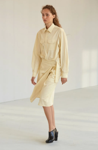 上起:ADEAM、KWAK HYUN JOO、BOSS、PRADA 、KENZO、PRONOUNCE 关键面料 焕发新意的色彩提升了常规面料的视觉效果。质地细腻的丝质面料以超亮反光纱线实现哑光与高光对比的纹理效果,精致垂坠的单色棉类材质、致密府绸弱化年龄界限,诠释清新的少女风格。 关键风格和单品运用 少女的悸动为沉闷的秋冬增添情感色彩。丝质面料制作的变形帽衫款式采用不对称设计,飘逸灵动;粉彩色的基础款风衣唤醒感官活力;叠穿式防晒套装将实用性与梦幻感相结合,兼具时尚力量与生活乐趣。