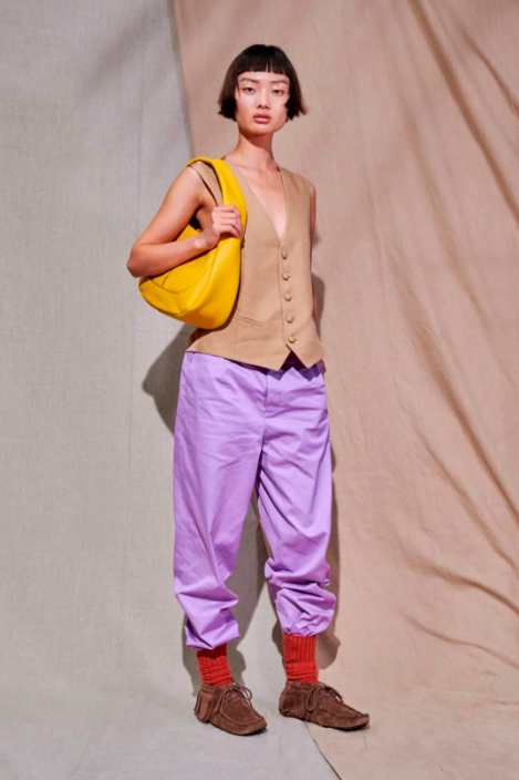 关键面料 未染感原色面料呼应返璞归真的潮流,十分契合当下城市人群对于舒适及精简风格的需求。羊毛、棉、亚麻等原生材质与各式精湛工艺碰撞,成就精美的微瑕感自然纹理;环保理念趋于常态化;抗菌、易护理等功能性增添服装的实用性。 关键风格和单品运用 极简主义持续盛行,耐久品质结合简约风格形成的基础性单品,造就新式经典风格。运动套装再升级,或拼接同色系提花面料,或采用超量感版型,或搭配基础款风衣;休闲衬衫式外套提升细节设计,如激光装饰,腰部不对称设计。