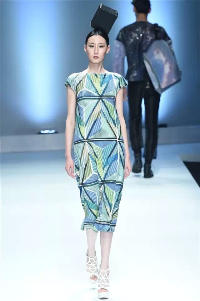 本次发布秀的设计主题是“和合”,从“和达科技、和爱人文及和处自然”三个方面,诠释中华民族独创的哲学概念。在和生、和处、和立、和爱的交融中,江西服装学院的师生们用充满创意的设计理念,构筑起设计理念的文化精髓,展示服饰之美。 服饰的设计亮点在于选择以时代魅力和最高价值为艺术导向,将生活艺术与时尚融合,通过层次感的搭配、简约的廓形和灵动的色彩,编织细腻的靓衣美裳。 伴随着开场小模特悠缓的步伐,一场带有民族哲学设计思想的发布秀拉开序幕。紧接着,音乐律动起来,服饰展示也丰富起来。服装的整体色调统一,黑白、灰蓝、墨绿低调不张扬,面料选择则更多样,飘逸的欧根纱、平实的图案、立体刺绣,每一种元素和谐互补。模特佩戴的几何状头饰也是整套系服装的亮点。(王赛)