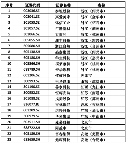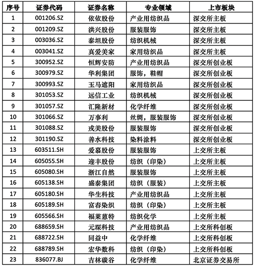 从细分专业领域看,服装服饰类新上市企业最多,占比30.43%;纺织(印染)、产业用纺织品、化纤产业,占比分别为21.74%、17.39%、13.04%,家用纺织品和纺机纺器占比均为8.70%。