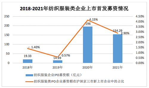 2018-2021年纺织服装类企业上市首发募资情况如下图3