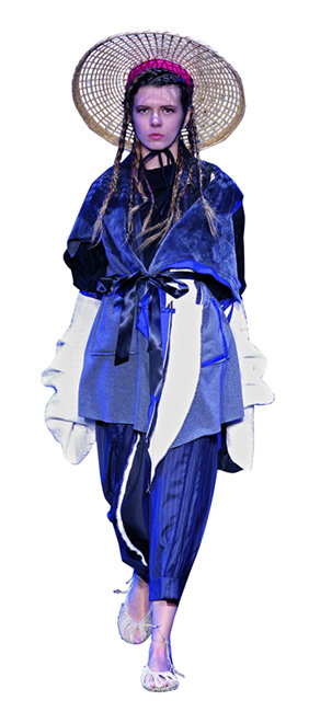 服装文化是一种思维方式 没有文化的设计是空洞的。因为那种设计只能是单纯的工业经验形态构成的东西,作品无法具有现代感与前卫性,也无法令人有感叹及产生共鸣。文化使设计师的衣服有了“灵魂”。作为一位东方的设计师,在中国崛起的进程中,在对自己的民族的独特性与自信心下,我们应该创作出一套完整的东方理念的服装设计,并期盼着最终能得到与西方理念同样的地位。 在十年“中国时尚地理系列”的创作过程中,我深刻地了解到民族化会是设计中的难题,东方文化的展现似乎无法避免将设计偏向民族化,而纯粹的民族化却因很多东西不符合现代人的感知,而无法做出现代感、时尚感,所以我认为一定要在国际的视野下求民族化,展现民族服装的当代性,一定要把我们某种民族文化,或者传统文化的符号,经过重新解构、处理、重构,这样才会更符合现代人的需求,表现出东方的儒雅、内敛,丰富的爱心,以及含蓄的内心。 当我们在设计中面对种种古代的东西时,必须先从我们现在需要什么、内心需要什么出发,再从我们的先贤那里学习吸收,返本求新。当我们找到他们的精神、他们所期待的结果时,大量应用现在的科技手段、现代的工艺技术将其再现,才能真正做出代表东方元素的民族服装,展现出国际化的东方设计。 我还发现,单纯地把民族化做出国际感、时尚感,仍然不足。我认真研究东方文化,了解到当除去东方文化的各种标签后,文化的根本就是一种思维方式。思维方式的不同衍生出人们看待事物的角度、方式不同。东西方思维方式的不同可体现在:东方文化关心的是人凭借人性来获取在社会中及宇宙中的和谐,西方文化关心的是人凭借理性来证明在自然界中的超越;中国心态追求和谐于宇宙之中,西方心态则从对抗中求得胜利。