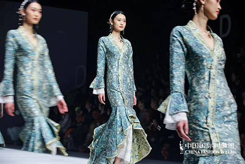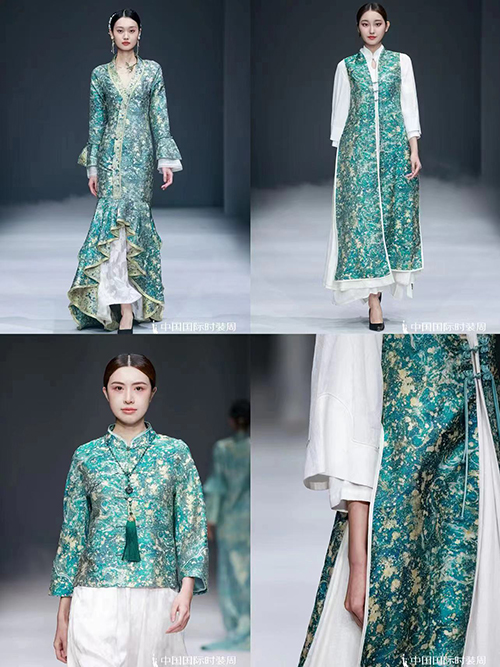 本季发布根据新时代生活方式需求,打造国风礼服与国风成衣不同穿着体验。面料采用全真丝织锦、真丝绡、醋酸缎、水溶刺绣蕾丝、提花丝麻等面料,结合手工缂丝、刺绣、盘扣、织锦、印金、植物染等各项非遗工艺。结合现代艺术与零碳环保理念,融合中国传统文化印记与风格进行设计再创,重新定义新国风服饰的潮流风向。
