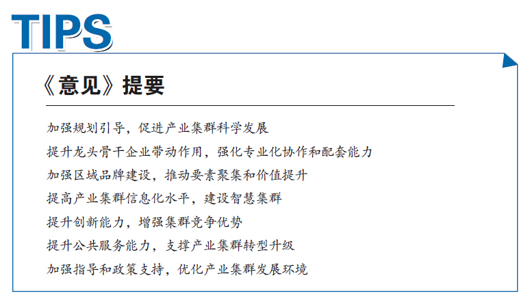 《意见》对推动产业集群发展具有很强的指导性,除建设智慧集群外,还有哪些亮点?