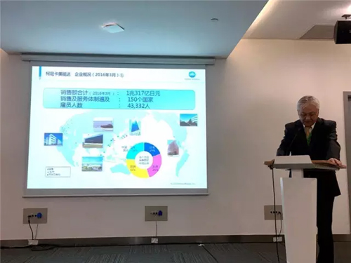 家氏信康表示柯尼卡美能达将坚守“为人类和社会创造新价值”,为长久实现“价值”活用本公司技术,努力通过公司事业提供“价值”。柯尼卡美能达为实现“创造新价值”,致力于为使用本公司产品和方案的用户课题解决作出贡献,成为“课题解决性数字公司”。