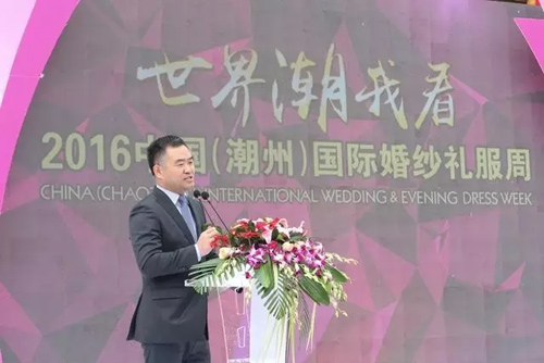 张庆辉在开幕致辞中首先表达了对本次活动的祝愿,他表示,作为国内著名婚尚产业基地,潮州率先以婚纱礼服周的方式推出系列活动,将在全国范围内起到积极的推动和示范作用,在婚尚产业从影楼时代到大众消费者时代迈进的过程中,以产业基地为核心,组织全国各地婚纱领域实力品牌集中展示中国婚纱流行趋势,向业界和消费者传递出最新的婚纱礼服流行趋势与婚尚产业的新方向。
