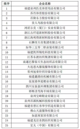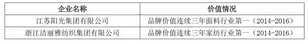 2016年中国纺织服装自主创新品牌价值评价企业(25家)
