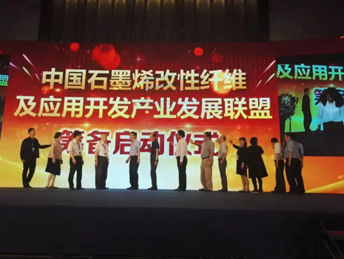 大会举行了“中国石墨烯改性纤维及应用开发产业发展联盟”启动仪式。该联盟由济南圣泉集团股份有限公司牵头组建,以宣传和贯彻国家有关石墨烯改性纤维及应用开发领域的各项方针、政策,积极推进行业结构调整,规范市场秩序,提高企业市场竞争力,使我国石墨烯改性纤维及应用开发跻身世界前列,将石墨烯改性纤维及功能纺织品产业的中国制造变为中国智造和中国创造为己任;并希望通过联盟的力量,加快带动我国石墨烯改性纤维及应用开发的发展,保障我国石墨烯改性纤维及功能纺织品产业快速、健康、持续发展。