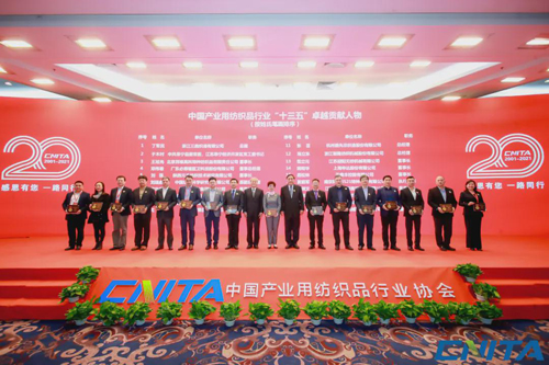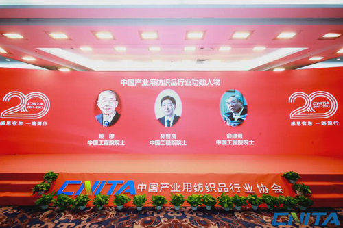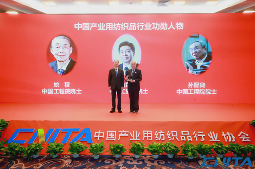 会上,中产协隆重发布了中国产业用纺织品行业功勋人物,授予中国工程院院士孙晋良、姚穆、俞建勇为行业功勋人物荣誉。