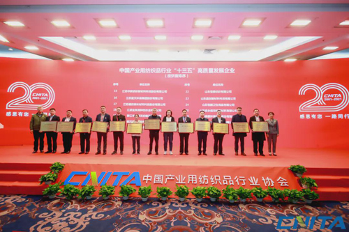 曹学军在致辞中表示,“十三五”期间,产业用纺织品行业积极推进供给侧结构性改革,致力培育产业发展新动能,立足服务国家重大工程拓展市场应用,产业规模效益持续增长,产业集群和重点企业发展势头良好,近百家企业入选工信部专精特新小巨人企业,产业用纺织品行业发展成为纺织工业主要经济增长点。“十四五”时期是我国产业用纺织品行业提升产业链现代化水平、实现高质量发展的重要机遇期,行业发展必须坚持深化供给侧结构性改革,增强创新驱动发展实力,推动行业高端化、品质化、绿色化、服务化升级,围绕满足消费升级和国家重大战略,加强应用拓展及工程化服务,以创新驱动、高质量供给引领和创造新需求,推动形成供需互促,产销共赢的产业新生态,增强产业链竞争新优势,为纺织行业和相关行业发展作出新贡献。 结合国民经济和社会发展“十四五”规划,曹学军提出,“十四五”期间,产业用纺织品行业发展关注的重点包括三个方面。一是强化科技创新,进一步发挥科技创新对产业发展的引领作用;鼓励企业加强非织造布领域的技术研发和推广,提高产品附加值;支持产业链龙头企业组织上中下游企业协同,加强校企合作,打造新型创新平台,提升产业链稳定性和质量效率,加大技术创新和科技成果转化应用。二是拓展应用市场,产业用纺织品行业要进一步开拓市场应用深度广度,加大面向体育休闲、医疗大健康、安全防护、海洋工程、国防航天等领域应用开发,加强产需对接,提升产品智能、功能水平,加强质量安全应用评价,提升全产业链服务能力。三是倡导绿色循环,行业发展要全面准确贯彻新发展理念,深化绿水青山就是金山银山意识,制定行业节能减碳行动方案,开发应用更多环境友好技术产品,提高平产品全生命周期的绿色循环水平。