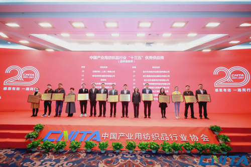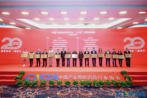 孙晋良感言和寄语讲到,从1974年开始接触复合材料,至今摸爬滚打了近50年,非常幸运能拥有将个人理想与国家需求、行业进步相结合的发展机会。作为一名从业近50年的科技工作者,他亲历了我国碳/碳复合材料从艰难起步到蓬勃发展的历程,也见证了中国产业用纺织品行业从“蹒跚学步”到“茁壮成长”,再到“展翅高飞”的过程。现在,碳/碳复合材料从原材料、设备、控制系统到产品,全部国产化,实现了真正的“中国制造”。产业用纺织品行业也实现了跟跑、并跑到部分领跑的转变。值此中国产业用纺织品行业协会成立20周年,孙晋良希望协会持续不断地推动行业的基础研究、科技创新、绿色发展、应用拓展再上新台阶,续写更绚烂的新时代产业用纺织品行业诗篇。 在行业“十三五”荣誉时刻,中产协发布了“十三五”卓越贡献人物、领军企业、科技创新企业、高质量发展企业、优秀供应商、优秀公共服务平台。