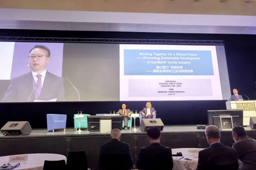 在致辞中,孙瑞哲还重点谈到了国际纺联。他指出,当前,疫情反复延宕,地缘冲突加剧,断链脱钩以及粮食能源安全问题日益突出,人类面临前所未有的挑战。同时我们也看到,各国(地区)实现和平与稳定的期待并没有变,希望加快经济复苏和发展的诉求没有变,团结合作、共克时艰的精神也没有变。