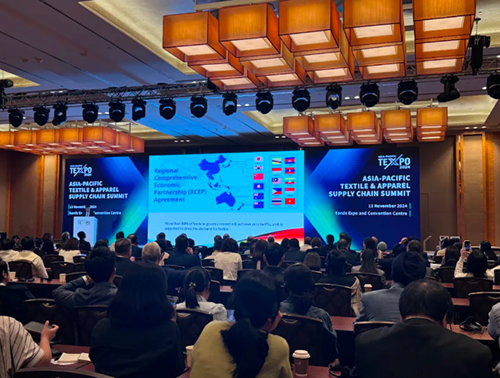 ![]() 展会首日,还举办了2024亚太纺织服装供应链高峰论坛,首次以“供应链安全”为主题,聚集全球300余位在供应链领域的影响力嘉宾,围绕区域产能新合作、贸易投资新增长、人工智能新应用、跨境电商新蓝海、可持续发展新模式等话题展开讨论,为促进亚太产业链供应链合作与重构贡献智慧。
