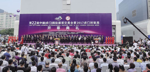 盛会展华章 霓裳舞太平 虎门服交会4天吸引采购商和观众12万人次 本刊记者_刘嘉 通讯员_涂娥/文 张贵东 裴超/摄 改革开放近40年,虎门大力创新发展服装服饰产业,形成了规模庞大的产业集群、配套完善的产业链条、成熟发达的市场体系。历经21年的力炼和30余载的沉淀,今年的虎门服交会承载着怎样的时尚新力量?又如何演绎了虎门服装的锦绣繁华? 11月17~20日,第22届中国(虎门)国际服装交易会暨2017虎门时装周(以下简称“虎门服交会”)在虎门热力举行。 四天时间内,主会场吸引了来自中国、美国、俄罗斯、迪拜等20多个国家、12万人次的专业采购商和普通观众。本届服交会交易成效显著,创新特色明显,时尚氛围浓郁,呈现了虎门服装“生态圈”创新发展的蓬勃生机,为服装生态圈注入新模式、新思维,引领虎门服装创新发展。 服交会精彩连连,备受瞩目 本届虎门服交会集中展示了“虎门特色”的服装供应链,涵盖了女装、男装、童装、中国流行面料、印花创意等。展场总面积达30多万平方米,主会场设在虎门会展中心,同时还设有20个分会场。 星光熠熠的虎门精彩连连,备受瞩目。中国纺织工业联合会会长孙瑞哲、副会长夏令敏,东莞市委常委、副市长张冠梓,东莞市政协原副主席钟淦泉,虎门镇委书记叶孔新,虎门镇委副书记、镇长邓卫洪,以及来自国家、广东省、东莞市有关行业主管部门、协会的领导和嘉宾出席开幕活动,见证了本届虎门服交会的启幕。 多年来,虎门服装服饰业在创意设计、品牌培育、智能制造、电子商务、智慧市场、智慧物流等方面取得了可喜进步。截至去年,虎门服装服饰业年工业总产值约450亿元,年销售额超900亿元,成为享誉国内外的以女装、童装、休闲装为特色的服装名城。夏令敏评价说,虎门为行业转型升级发挥了重要示范作用,虎门服交会依托虎门区位优势、产业优势,聚集海内外优势资源,成为了行业年度盛会。 在本届服交会主会场,以纯、纽方、ANOTHER ONE、木棉道、Zimple、意澳、ECA等近百家品牌企业进行了实力与形象展示,他们用创意和匠心呈现出一个更加年轻化、潮流化和品质化的虎门服装。 另一方面,本届服交会追本溯源,从产业链源头出发,形成四大新特色:一是联合中国纺织信息中心设置“中国纺织面料流行趋势发布”静态展示区,推动虎门服装面料水准的提升;二是特设服装印花创意精品展,让数码印花先进工艺与虎门服装相对接;三是推广社会责任,设立“虎门责任品牌”推介专区,展示虎门“责任品牌”企业风貌,提高企业的社会责任意识,促进企业可持续发展;四是电商专区更趋专业化,猪八戒、拼多多、南讯软件、绣码等知名电商服务商,为虎门本地企业带来更加专业的服务。 服交会期间还举办了虎门国际电商节、“虎门杯”国际青年设计(女装)大赛、12场时装发布会、多个行业高峰论坛等30多项活动,呈现了一场时尚盛宴。邓卫洪表示,虎门将借此契机,着力搭平台、建设施、优服务,打造虎门千亿级服装服饰产业集群,共同携手,再创辉煌。