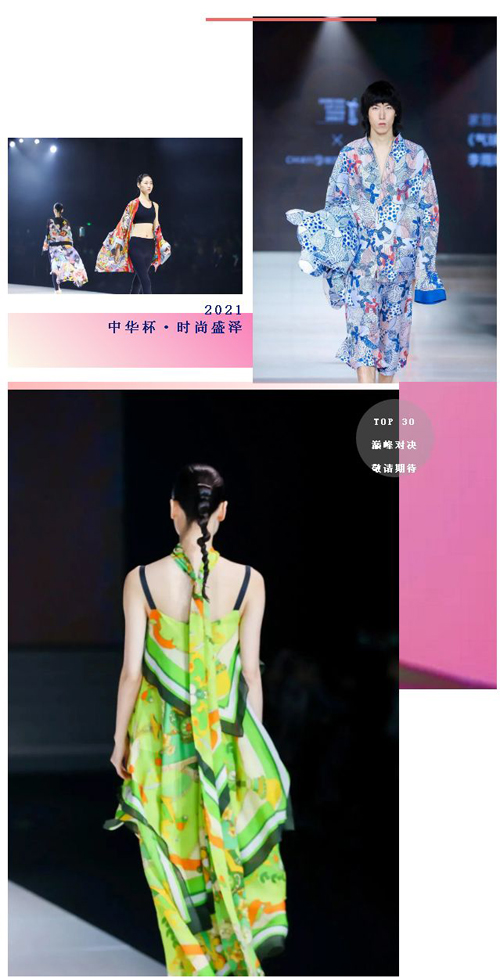 2021“中华杯·时尚盛泽”数字艺术应用设计大赛依托国家级、国际性服装设计赛事“中华杯”多年来的口碑美誉积累与专业经验沉淀,立足千年绸都时尚盛泽的面料产业强劲优势,以数字化趋势为全新切入点,从“国潮、环保、未来”三大系列版块出发,打造时尚、家居、运动三大组别的印花面料服饰作品,包括印花面料图案设计及对应的适用于商业落地的服装、配饰类产品设计。大赛通过面料、时尚服饰与数字印花科技的结合,发掘基于“艺术印花+时尚科技+产品应用”的产业应用型创作人才,激发盛泽面料产业源源不断的新活力。