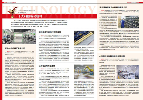| 2022中国纺织服装行业年度精锐榜揭晓常熟纺机获十大科技驱动榜样 |
