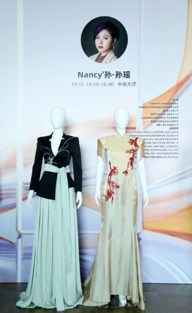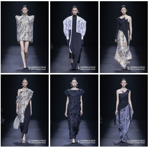 ![]() “品牌一直坚持全手工定制,定位于新中式成衣高端服装,系列设计将中式风骨与西方服饰巧妙结合,提升了服饰的华美与质感。”NANCY'孙、SUNYAO品牌主理人孙瑶本次的设计灵感来源于曹植《洛神赋》,通过运用肌理感面料以及刺绣、钉珠等手工艺,将华茂春松、流风回雪等词句运用到了「洛神赋·期冀」系列服装作品之中。她表示,本次与大树纺织、俪森纺织、蜀润纺织、策源地纺织、才高绣品、隆凯数码印花等柯桥纺织企业进行了合作,从结构、色彩等方面充分挖掘了面料的应用空间。“未来希望能够跟柯桥有更加深入的合作,用不一样的设计理念和方法来体现面料的独特工艺。”