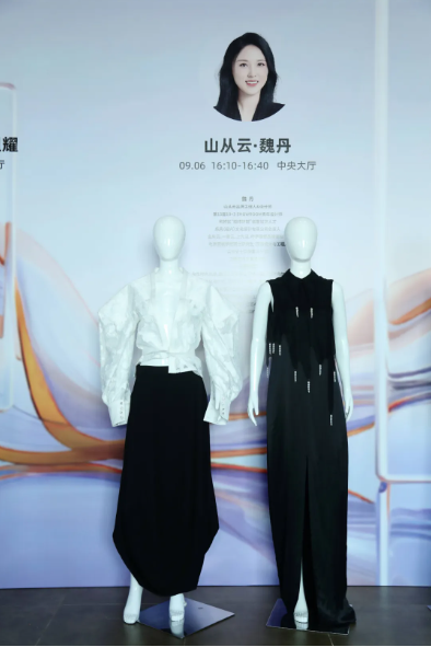 ![]() 山从云品牌主理人&设计师魏丹以「光年」为主题进行女装设计,汲取经典服饰的精髓,并融入现代元素,展现了独特而优雅的风格。“本次设计在注重线条流畅的同时,通过立体的剪裁和拼接方式,打造出充满层次感和动态美的魅力服装,体现出女性的线条魅力。”她进一步表示,在柯桥创业的过程中,政府在设计开发、资源对接等方面为品牌发展提供了很多帮助,本次发布会采用的面料也来自典俪纺织、永盛工贸、万姿科技三家柯桥企业,产品与品牌的舒适、优雅的设计调性相符,在保证品质的基础上也为服装设计带来了创新灵感。