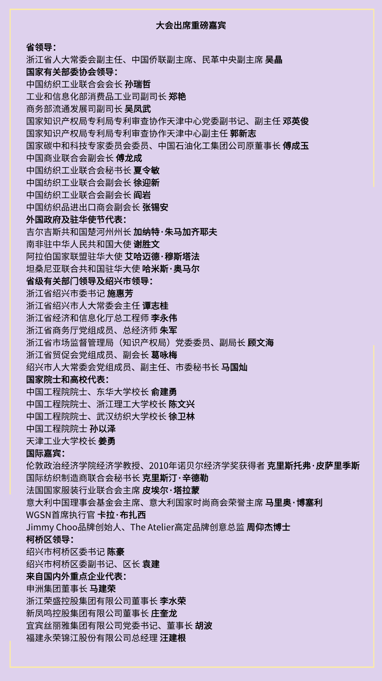 ![]() “自2018年首届世界布商大会召开以来,绍兴坚持守正创新、以转促新,突出‘集群式’发展、‘智能化’伸展、‘走出去’拓展,不断厚植‘产业+市场+创新’发展优势,推动绍兴纺织‘凤凰涅槃’,进一步巩固提升了全国产业链条最完整、产能规模最庞大、专业市场最发达的纺织强市地位。”浙江省绍兴市委书记施惠芳在致辞中表示,未来绍兴将深入实施“五大战略”,以新型工业化、新质生产力赋能纺织产业焕新增长,打造全球纺织产业总部经济集聚地、创意设计策源地、新质业态先发地、商贸会展主阵地,努力为世界纺织产业高质量发展作出新的更大贡献。