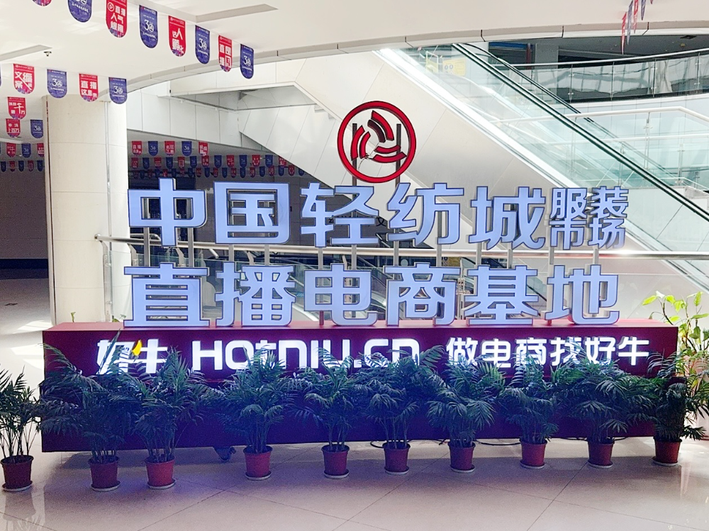 ![]() 早在2019年底,市场便以前瞻性布局在AB区五楼建成600平方米“电商一条街”,为传统业态植入电商基因;2021年,电商直播版图进一步扩展,于DE区四楼引入5000平方米的浙江多看看直播基地,提供专业直播支持;2022年8月,在柯桥区人民政府支持下,中国轻纺城服装市场直播电商基地启动筹备,并于2023年4月正式开园。当前,该直播电商基地由浙江好牛集团运营,集货源选品、现场直播、培训孵化、行业活动于一体,不仅实现了规模跨越,更通过扎实的基础服务赋能企业。