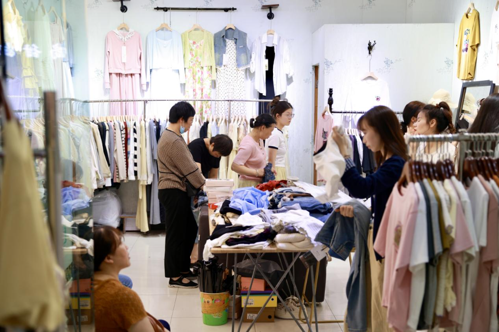 ![]() 目前,服装市场已建成规模近4万平方米的电商直播基地,成功培育出2家亿级头部商家和3家千万级商户,今年上半年,该基地累计销售额已达2.4亿元。与此同时,市场通过打造沉浸式购物环境,将线上流量转化为实体“留”量,进一步带动了市场整体人气和商户经营效益的同步增长。