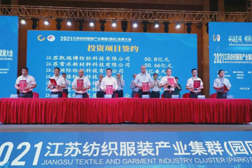 5月31日,主题为“科技引领 创新赋能”的2021江苏纺织服装产业集群(园区)发展大会(以下简称“集群发展大会”)在江苏沭阳召开。 会上,沭阳经济技术开发区与江苏凯瑞博纺织科技有限公司、江苏常沭新材料科技有限公司、江苏洲际纺织科技有限公司、江苏新佳纺织科技有限公司、江苏太荷纺织科技有限公司、江苏锦能纺织科技有限公司、烟台明远创意生活科技股份有限公司签订了182.46亿元的投资协议。 2021年尚未过半,沭阳纺织产业招商已屡创佳绩,沭阳让众多行业龙头趋之若鹜的动力是什么? 打造苏北纺织最强“链” 众所周知,企业投资的最终目的就是实现利益的最大化,而良好的营商环境能够显著降低制度性交易成本,有效稳定投资者预期。