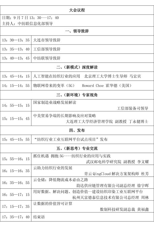 随着消费端升级,市场要求更高质量、更时尚、更多样以及更个性化的衣着,供给端的能力提升是下一个高增长点。面对机遇,行业也面临着前所未有的挑战。为了促进纺织行业高质量发展,推动互联网、大数据、人工智能和纺织工业深度融合,中国纺织工业联合会将于2019年9月7日在辽宁省大连市召开“2019年中国纺织行业两化融合大会”。 本届大会由中国纺织工业联合会主办,中纺网络信息技术有限责任公司、中国(大连)国际服装纺织品博览会办公室承办。大会将以“新环境·新模式·新思考”为主要议题,届时,工业和信息化部的重要领导,中纺联有关领导,以及工业互联网、智能制造领域知名专家、学者,将与大家面对面交流,做专题讲座。 聚焦中美贸易争端,5G变革紧跟时代 据国外媒体报道,中美发生贸易争端的主要原因之一在于争夺5G主导权。纺织业对无线通信网络的需求已经显现,5G网络可为高度模块化和柔性的生产系统提供多样化高质量的通信保障。和传统无线网络相比,5G网络在哪些方面优势凸显,起着怎样的关键性作用?本次大会荣幸请到了大连理工大学经济管理学院教授丁永健,为大家做5G应用、中美贸易争端解读,紧跟时下热点,聚焦核心话题,紧贴事实,内容丰富。 着眼未来,人工智能、边缘计算带来行业变革 随着人工智能技术的不断成熟,人工智能已经应用到多个领域。现如今,人工智能技术开始在边缘侧扩展,庞大的数据量需要快速有效地分析,这极大增强了对于边缘计算的需求,边缘计算的重要性因而逐渐凸显。 边缘计算具有什么特点?边缘计算如何实现智能纺织互联世界?中国智能制造拜仁会专家委员,北京理工大学教授马宏宾将在会上向大家精彩介绍人工智能在纺织行业的应用。 知名专家学者,行业大咖云集一堂 工业互联网是为了让制造业实现网络化、数字化、智能化,构建一个集海量数据采集、统计和分析的基础服务体系,搭建出制造资源在连接、供给、高效配置的工业云平台。 本次大会将对国家工业互联网平台战略、人工智能与边缘计算带来的变革做专业解读。会上,特别邀请到无锡物联网产业研究院副院长Howard Choe博士带来“物联网带来的变革”。此外,9月7日,行业翘楚云集,相关领域专家及企业代表共同研讨与分析未来纺织行业的发展。 据悉,在本届大会上,还将对2019年度纺织行业工业互联网平台试点项目进行发布,特邀企业代表分享和交流近年来业内在两化融合方面所取得的成果、经验和做法,共同推动纺织行业工业互联网云平台的发展。 在2018年举办的以“工业互联网与智能制造”为主题的纺织行业两化融合大会上,成立了“中国纺织行业工业互联网联盟”。今年,大会还将同期举办联盟第一届理事会第二次(扩大)会议,通过工业互联网平台、工业互联网标识解析讲座,让联盟成员深入理解工业互联网技术和知识;会上将进行纺织行业工业互联网案例分享,以更好地推动纺织行业工业互联网的应用和发展。 目前距离大会开启已进入倒计时阶段,请有意参会者抓紧时间报名。9月7日,在大连,不见不散! ![]() ![]() |