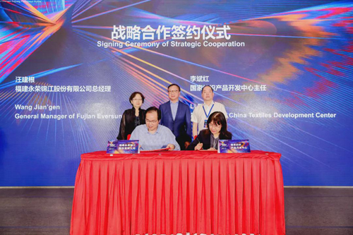 ![]() 会上还举行了国家纺织产品开发中心与福建永荣锦江股份有限公司的战略合作签约仪式以及国家纺织产品开发基地授牌仪式。永荣锦江正式加入并成为“国家功能性聚酰胺纤维产品开发基地”,孙瑞哲为企业进行了授牌。