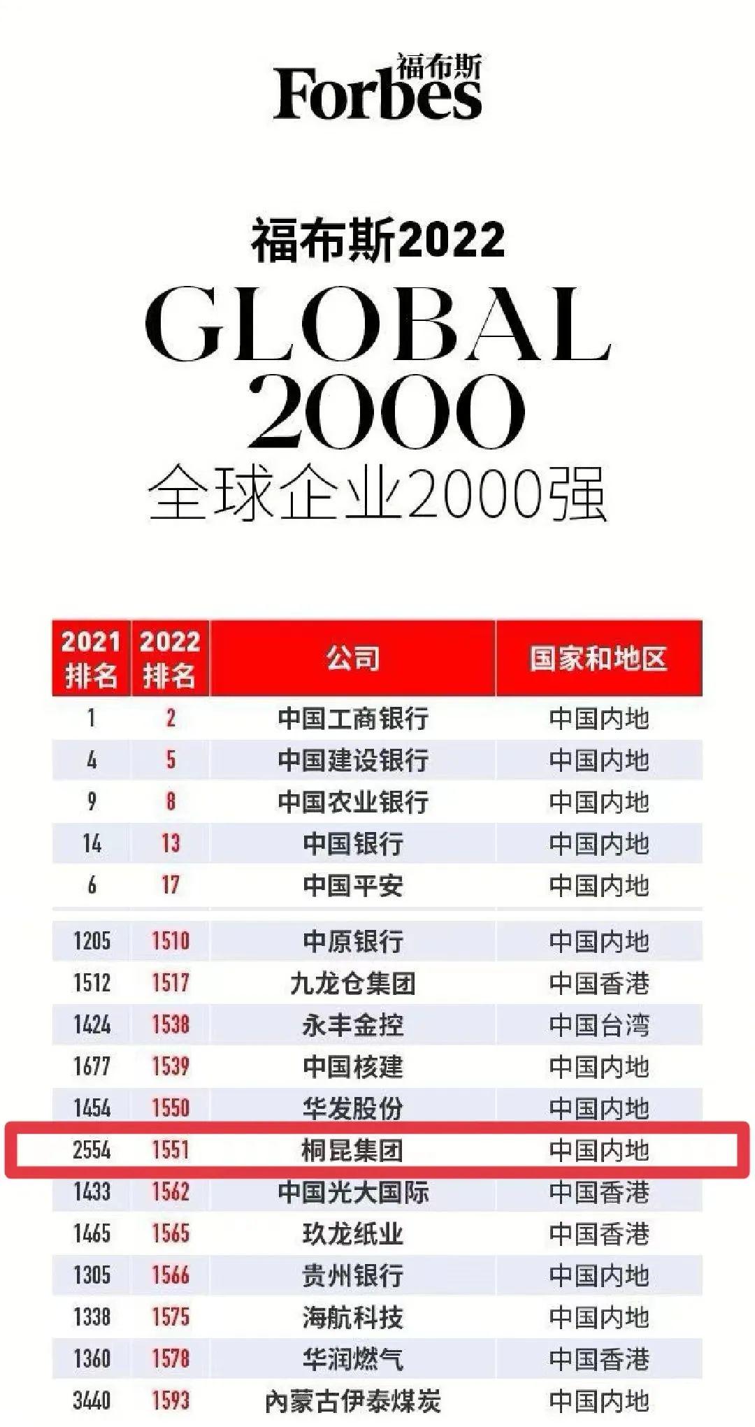 | 桐昆首次上榜福布斯2022全球企业2000强! |