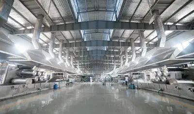 ![]() 图为浙江省宁波大发化纤有限公司用来制作再生涤纶短纤维的牵伸工艺生产车间。