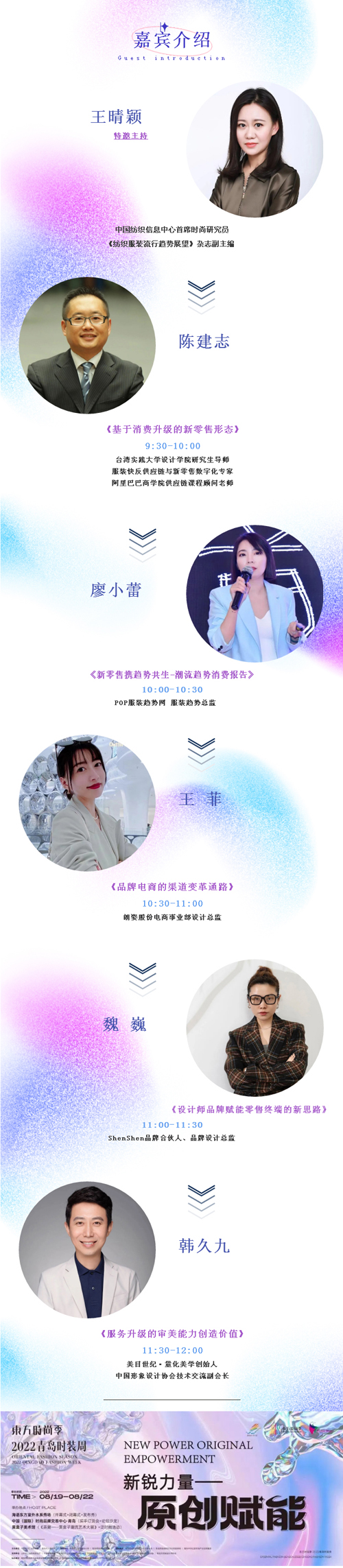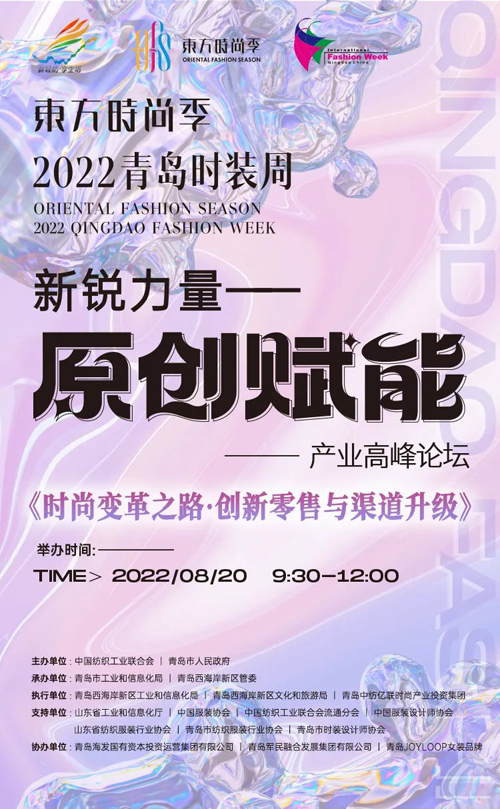 2022年青岛时装周《时尚变革之路·创新零售与渠道升级》产业高峰论坛将围绕当下服装零售市场的新趋势、新痛点和新需求,从行业趋势、运营模式、客户经营、商品赋能等多个维度邀请服装零售行业内各领域专家一同探讨和探索未来服装零售转型的破局之路!