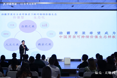 ![]() 劲霸男装一直以“家国实业楷模”为愿景,近年来不断关注与深度践行可持续发展的议题。作为此次主题论坛的发起者,劲霸男装CEO兼创意总监洪伯明在主旨演讲中抛砖引玉,分享了自己作为中国男装行业实践者的可持续思考:“服装消费品它是有一个很强的文化属性的产品,它能更好地携带中国文化的魅力,然后和中国品牌一起去影响世界。一个高端品牌,一个在东方美学上想要长期践行的品牌,最重要的一定是国货携手国人,品牌背后的品质风格、精神内核,是需要去深度链接消费者的。同时劲霸作为一家践行长期主义的品牌,有所为有所不为,这背后源于我们对于商业,对于文明的发展,以及对于文化的思考。42年来,劲霸男装一直在融萃东方美学文化、人文精神、产品实力等领域精进和创变,希望以自然之美、人文之美、商业之美,成就中国可持续价值生态的样板,和全行业一起拥抱可持续发展的美好明天。”