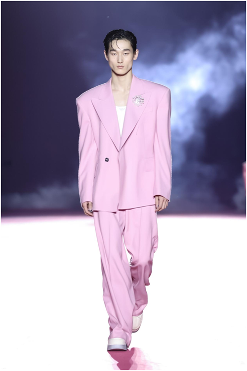 ![]() 在巨型全粉的露天秀场,没有人可以置身事外,这是在极短的时间里,时装与艺术最高频的对话,也是一切细节浮动的精彩时刻。音乐的震动隐匿于服装的流动中,模特动态的轨迹被强行拽入时代的洪流,静止般“刺入”视线。本季,男性线条流畅与女性线条的刚硬形成对比,在冲突中用色彩抵达和谐,复古与未来交织,情绪与行为互补,从容踱步,设计理念缓缓流淌,即追溯过往,也启幕新的纪元。