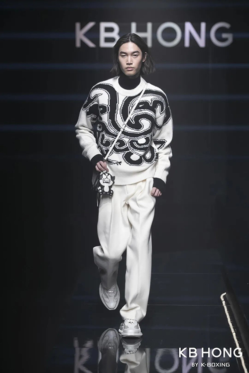 KB HONG这一季将东方与西方看似截然不同的两种风格,通过剪裁、缝合,成为了一体。更从中国传统服饰中汲取丰沛灵感,为经典男装的款式赋予更具新意的细节设计和廓形,同时辅以肌理材质的变幻、拼接及撞色的对冲、叠穿主义的运用等,呈现出一个关注潮流、但尊重本源,不囿于传统、只为忠于自我的男性对于当下时装从不设限的潮流态度。
