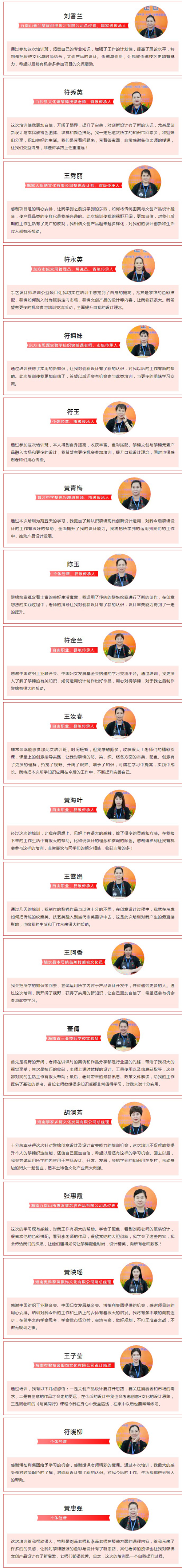 ![]() ![]() 此次培训师资力量雄厚、课程内容丰富、教学严把质量,让每一位学员都受益良多。本期师资包括中国纺织工业联合会原副会长孙淮滨,金顶奖设计师、项目公益大使刘薇,中国纺织非遗推广大使、清华大学美术学院教授李薇,昆明学院美术与艺术设计学院副教授赵琛,华东理工大学商学院职业导师、品牌商业运营资深专家吴晓鹂,师资课程均按照学员特点量身定制,其中李薇老师的黎锦与四大织锦的区别和应用领域使学员产生浓厚的兴趣,课后互动十分活跃;另外学员流露出的最大欣喜是培训期间参与了创意设计,并在刘薇老师的指导下经过实操转化成了与以往不同的织锦图案,学员的心情都十分激动,为自己的收获感到意外和惊喜。