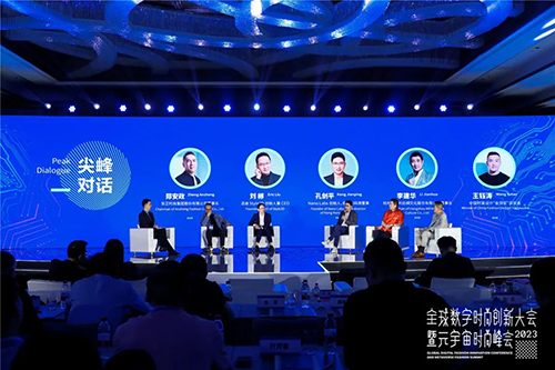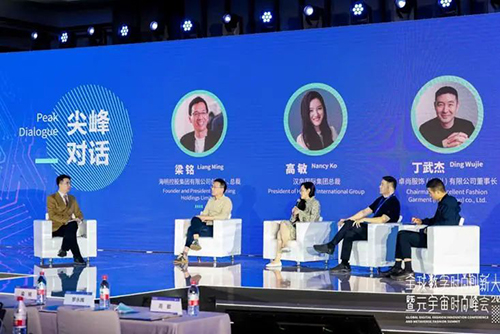 ![]() 在尖峰对话环节,凌迪Style3D创始人兼CEO刘郴,Nano Labs创始人、香港数码港董事孔剑平,安正时尚集团股份有限公司董事长郑安政,杭州万事利丝绸文化股份有限公司董事长李建华,中国时装设计“金顶奖”获奖者王钰涛,共同围绕如何带动时尚产业链实现数字化转型、元宇宙时代时尚企业的新机遇、如何抓住机遇等议题进行深入探讨。