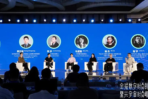 ![]() 对话环节,杭州载艺科技有限公司创始人总经理(仲夏物语)黄正能,INXX联合创始人铁手,布料图书馆创始人马黛霞,“SHIJIE诗简”品牌创始人兼创意总监、中国十佳时装设计师施杰,陳宇STUDIO创始人兼设计总监陈宇等嘉宾还围绕数字技术如何落地、未来数字化的机遇等议题展开了讨论。