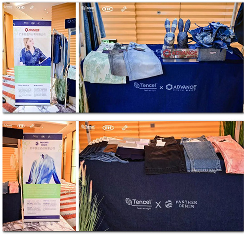 ![]() 在会场发布区内,兰精最新的天丝™牛仔系列创新应用新品引人注目。