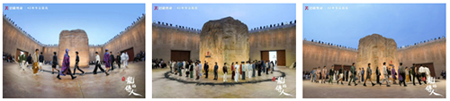 幻城夯土秀场中央由215立方米的黄土夯垒起的“河南土”,四面夯土墙上中原大地18个地市、100多个县,以及1700多个乡镇的名字.....穿过百亩高粱地,进入这样一个场域,把我们带到的已不仅仅是一个秀场,而是更大更深邃的心灵与时空的对话。