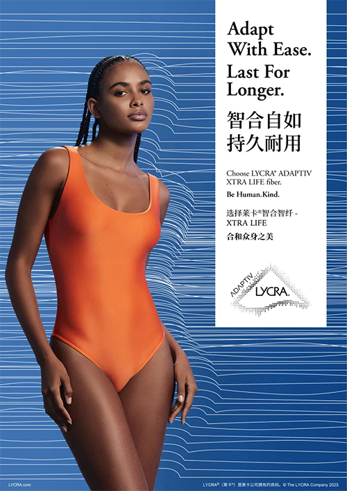 全民自护时代来临,消费升级的一大表现就是舒适、健康消费理念觉醒。为了满足市场对耐用服装的需求,提供更具尺码包容性、更高舒适度和更强功能的服装,莱卡公司积极扩展其 LYCRA®ADAPTIV fiber(莱卡®智合智纤)系列产品,推出两种新纤维——莱卡®智合智纤-BLACK、莱卡®智合智纤-XTRA LIFE。