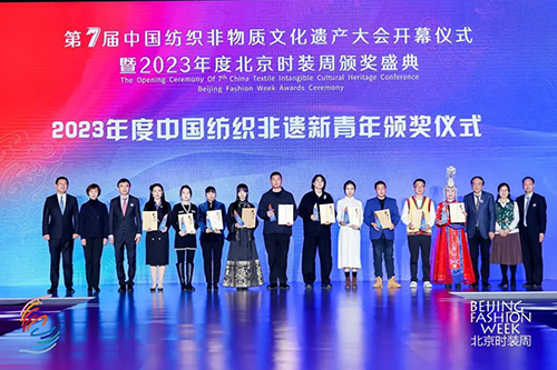 ![]() ![]() ![]() ![]() 12月21日晚,第七届中国纺织非遗大会开幕式暨 2023 年度北京时装周颁奖盛典上,2023 中国纺织非遗推广大使、 2023 中国纺织非遗新青年揭晓。同期还举办了“兴安岭上兴安盟”非遗服饰大秀以及北京时装周颁奖盛典。