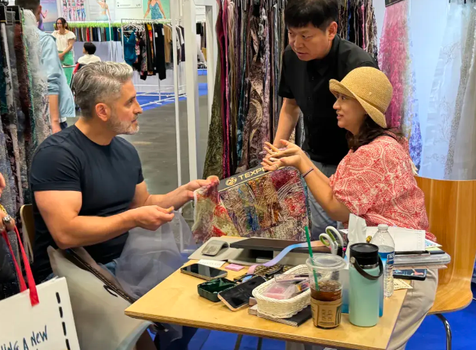 开展首日,现场人潮涌动,展会登录处排起了长队,本届展会吸引了一批纺织服装行业的重量级买家,如Target、Macy’s、JCPENNY、Athleta、American Eagle、Ralph Lauren,也迎来了众多跨界合作买家到场参观洽谈,展厅内商贸氛围浓厚。