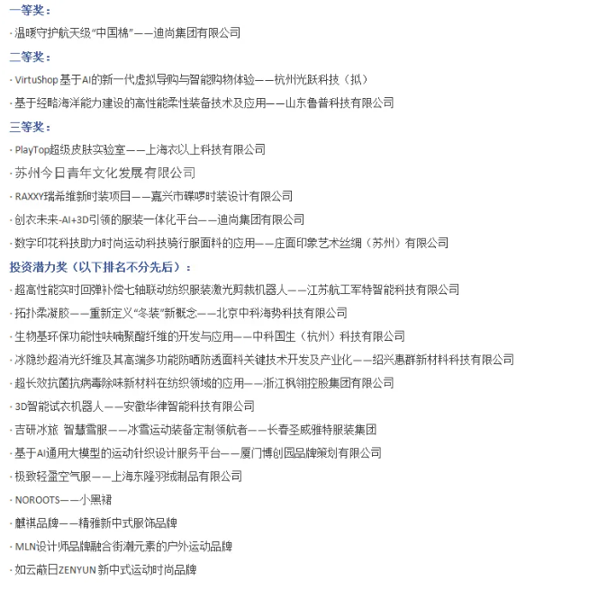 通过大赛的持续举办,将挖掘培育出一大批纺织服装领域的新技术、新材料、新设计,让优秀项目与时尚产业集群地精准匹配对接,开拓更多落地场景,以新质生产力为中国时尚产业打开更高、更新、更广阔的空间,努力打造一批具有国际影响力的知名品牌和产业集群。